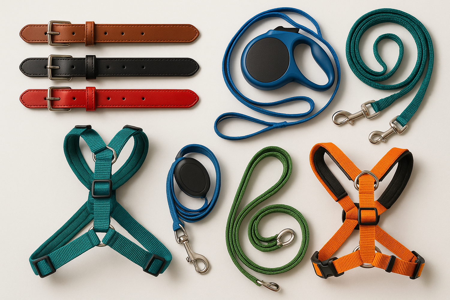 Everyday collars, strong leashes and comfortable harnesses for safe walks and reliable...